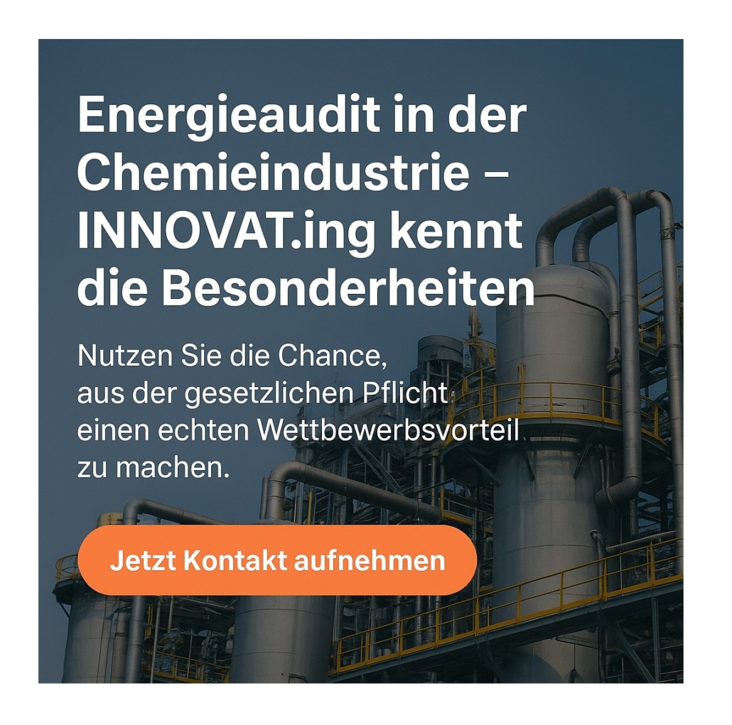 Die Chemieindustrie ist der größte Energieverbraucher in Deutschland. INNOVAT.ing zeigt, wie ein Energieaudit echte Einsparpotenziale aufdeckt – mit Förderungen bis zu 60 %.