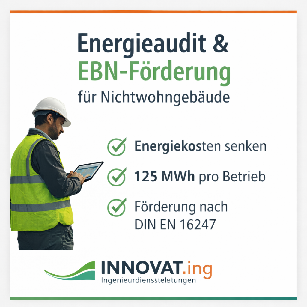 EBN-Förderung nutzen: Energieaudit nach DIN EN 16247 senkt Energiekosten messbar. Jetzt informieren, wie Unternehmen von der Energieberatung profitieren.